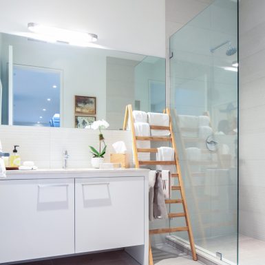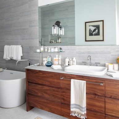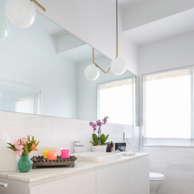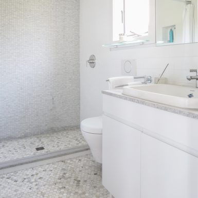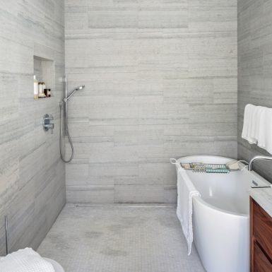 The master bath is an open plan, so no glass shower enclosures, just an open wet area, and a huge vanity for lots of storage, two things I wanted most for the master.