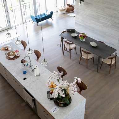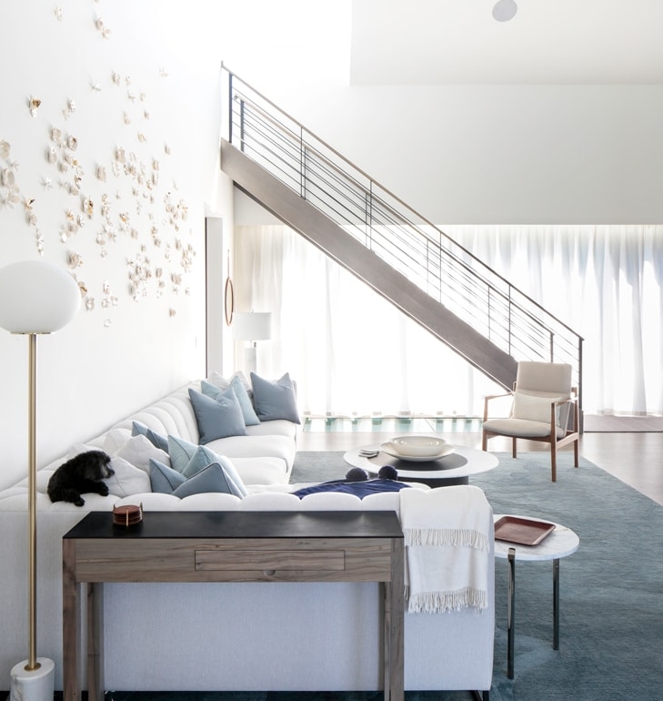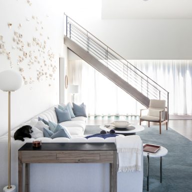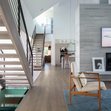 All the team members had the same vision, so the process was easy and fun. I have always wanted a house at the beach that reminded me of my first loft in lower Manhattan, with high ceilings, wide open spaces, and one main living, dining, and hang out space with a beautiful fireplace — as well as the option to live on the first and main floor without having to climb stairs.