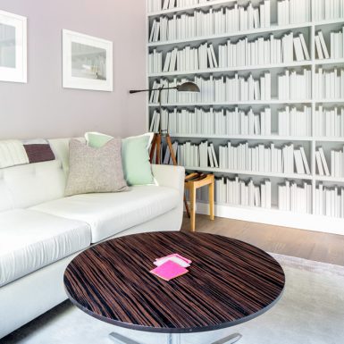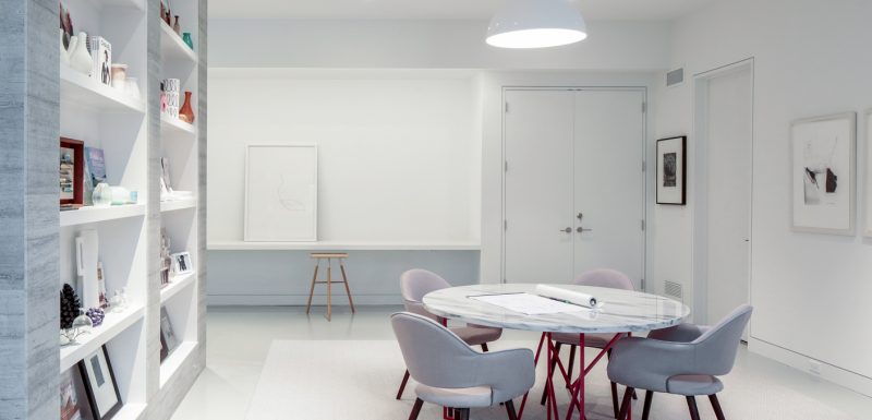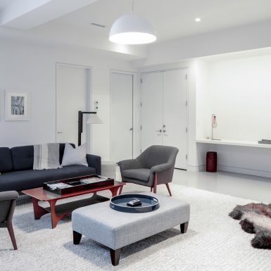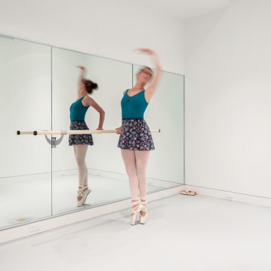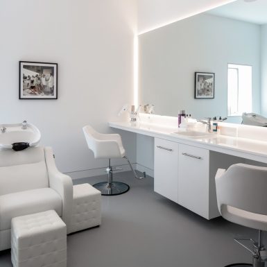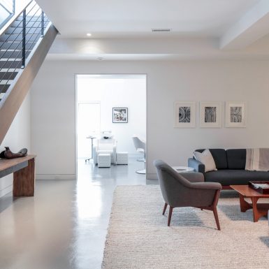 Almost 5,000 square feet inclusive of the lower level allowed for lots of programming, which houses the salon, the ballet room, another media area, a conference room, a full bath, storage, and some office space.